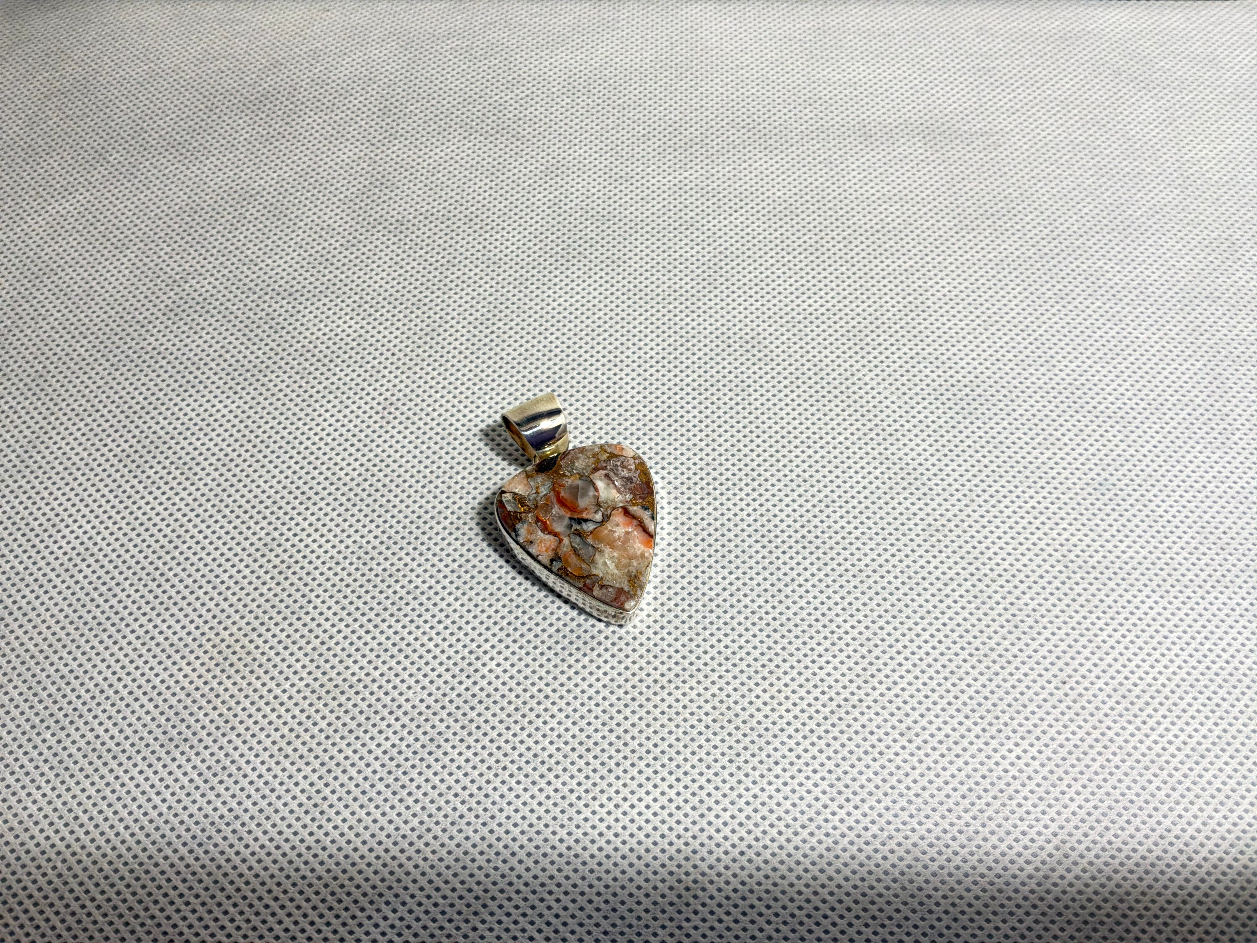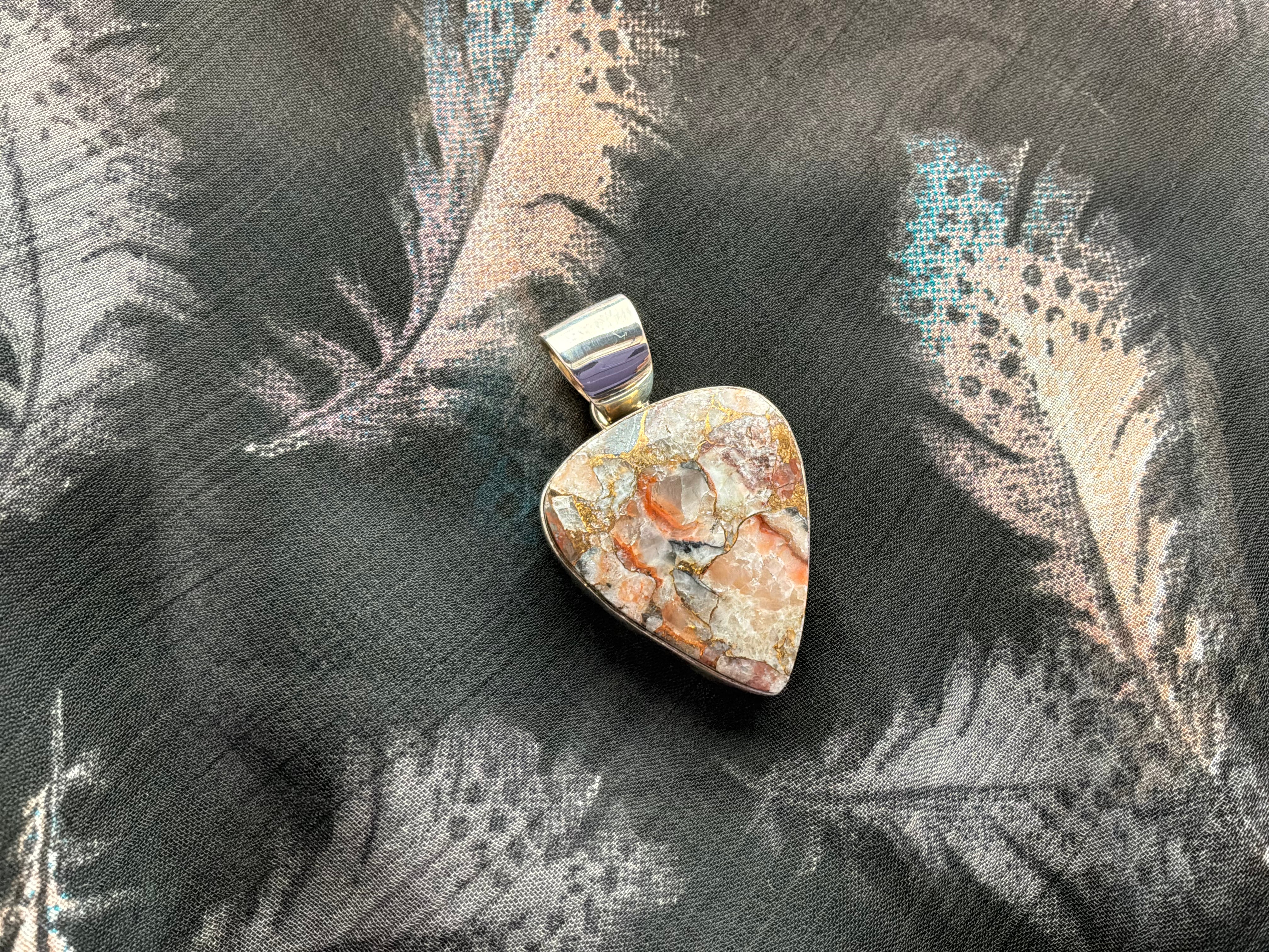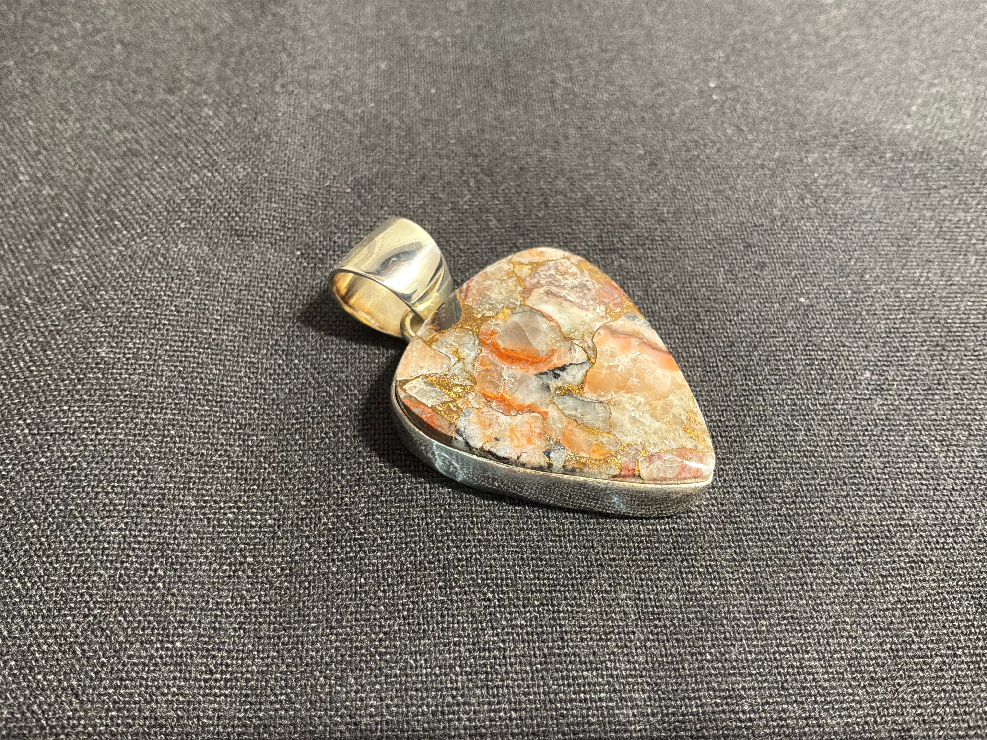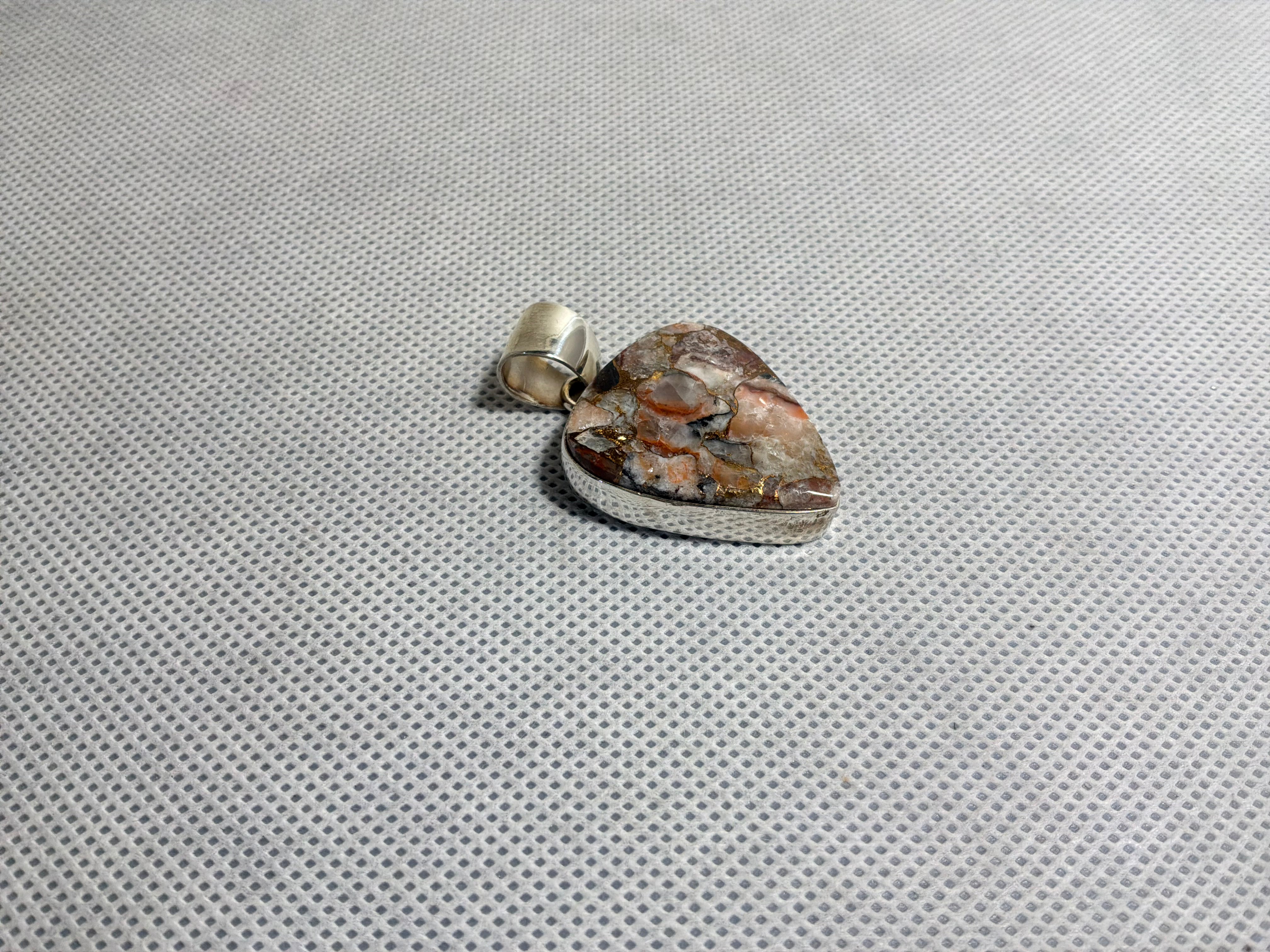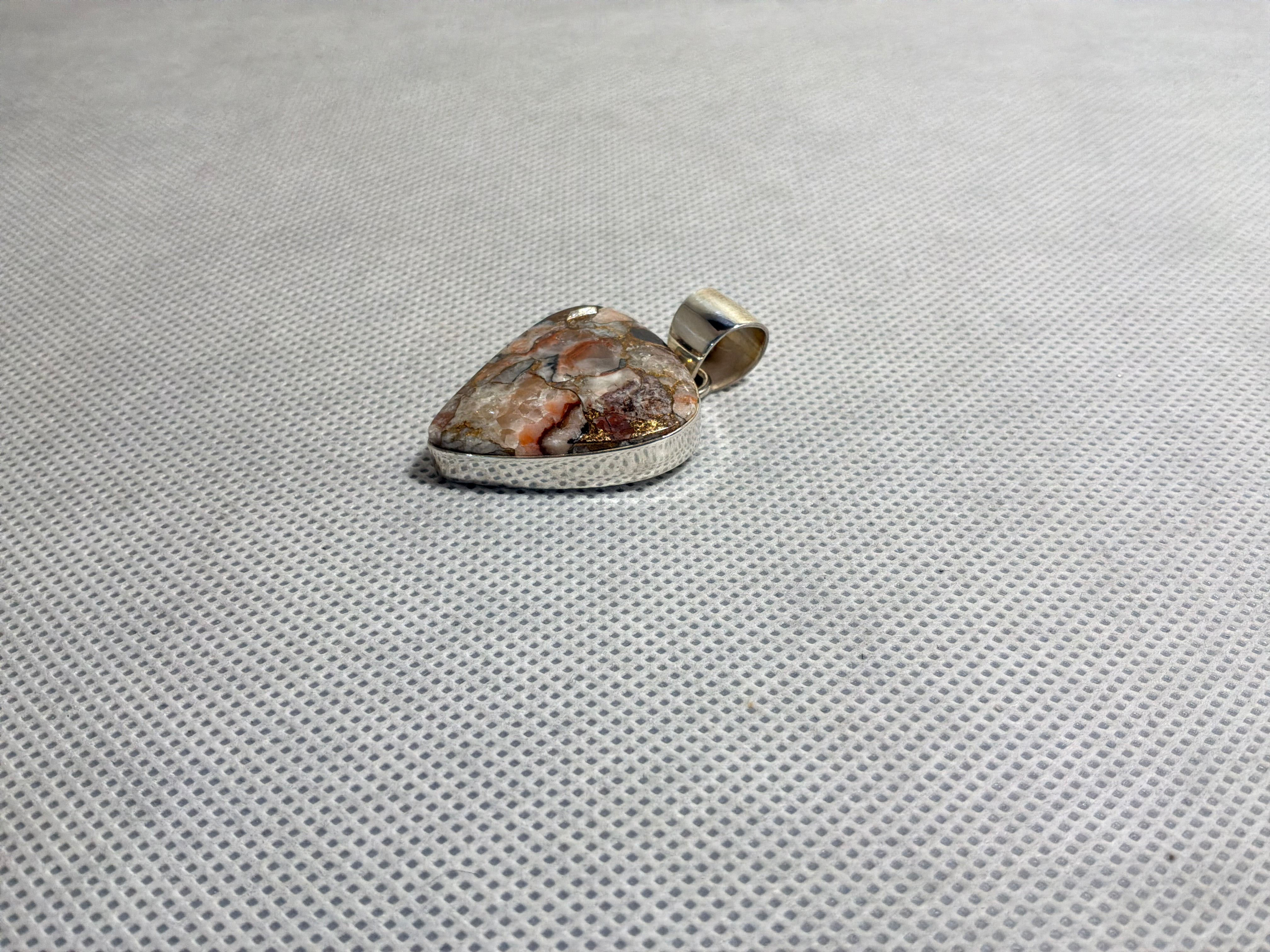Sterling silver pendant with cultured agate with bronze infused.