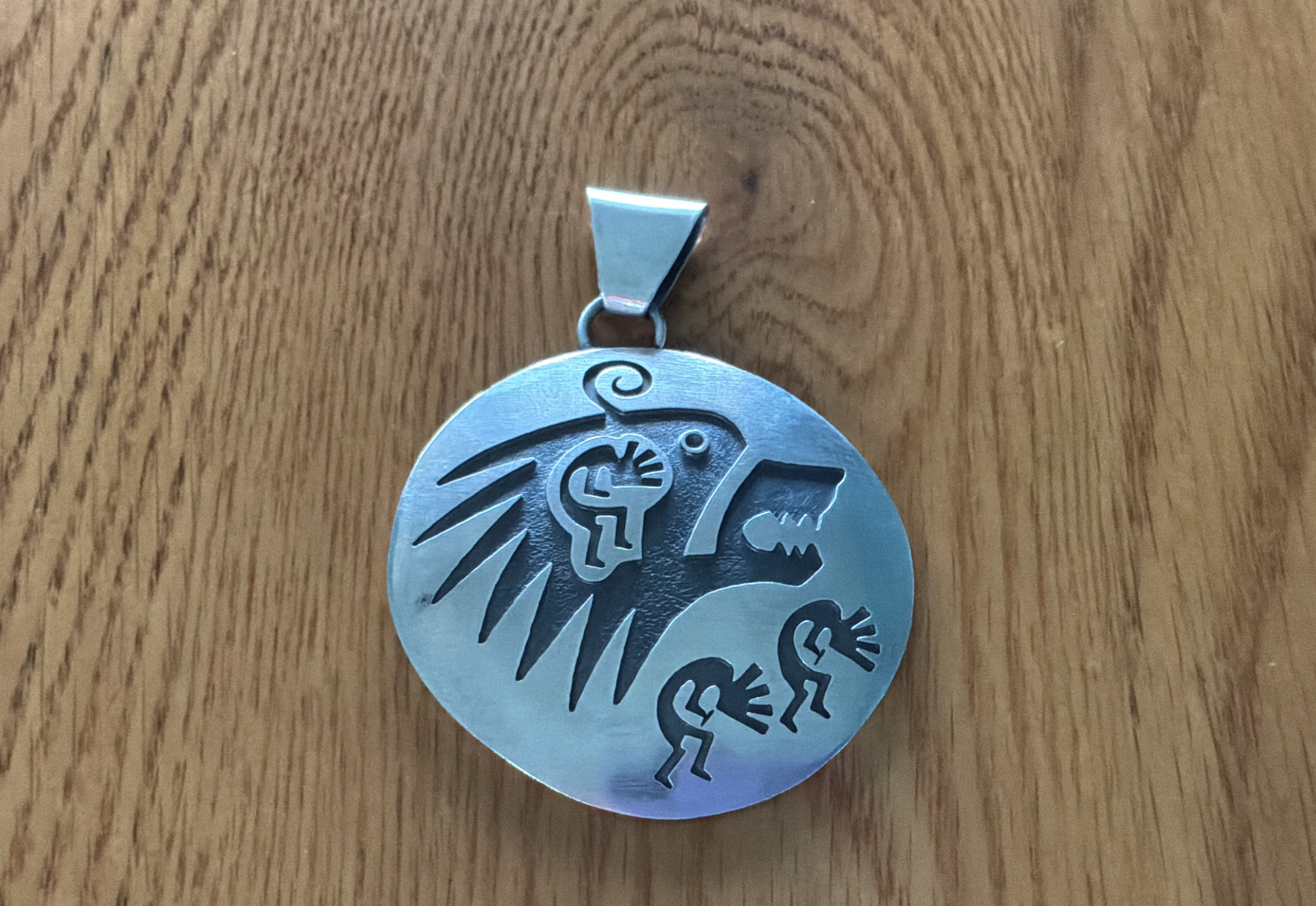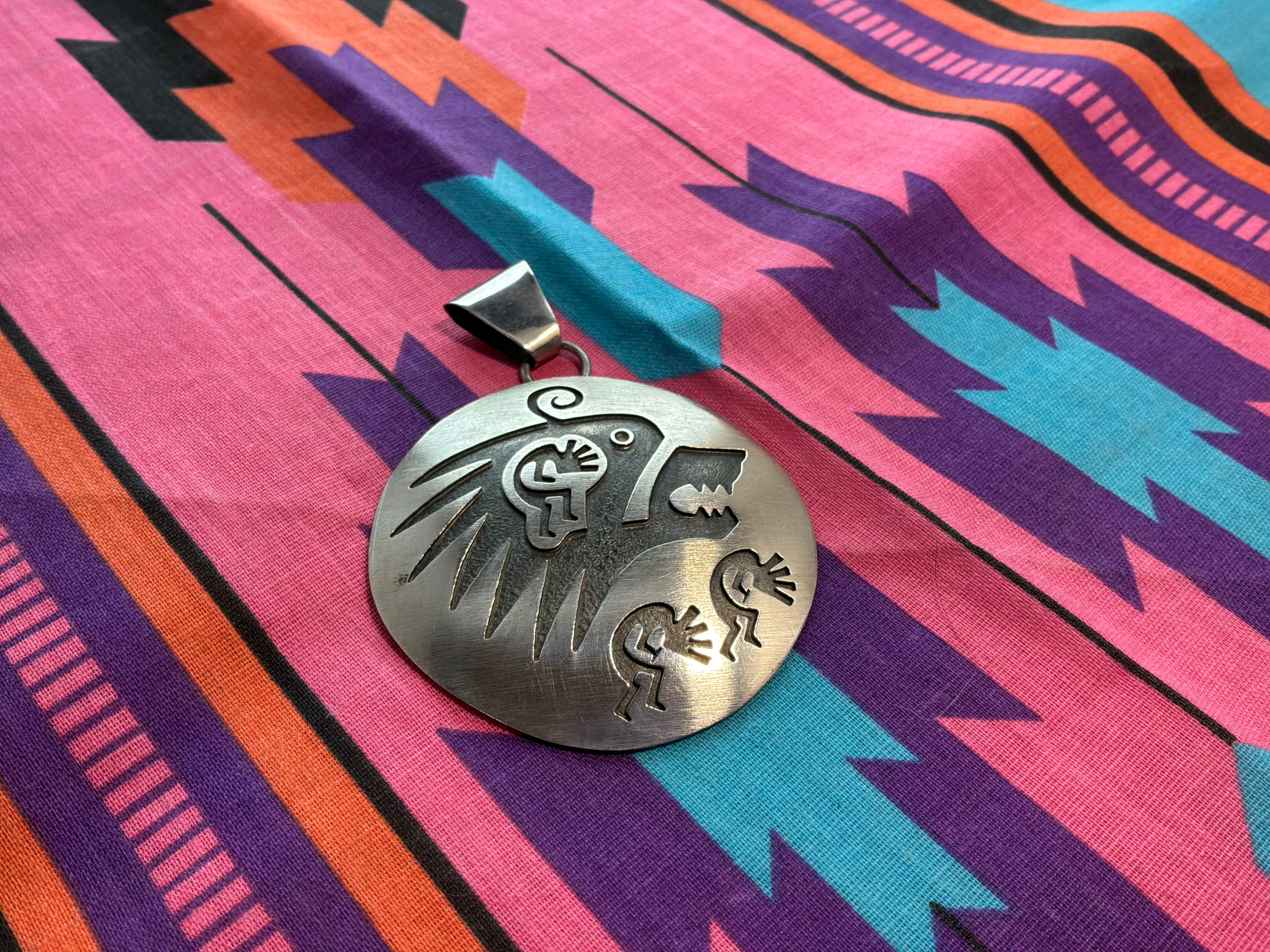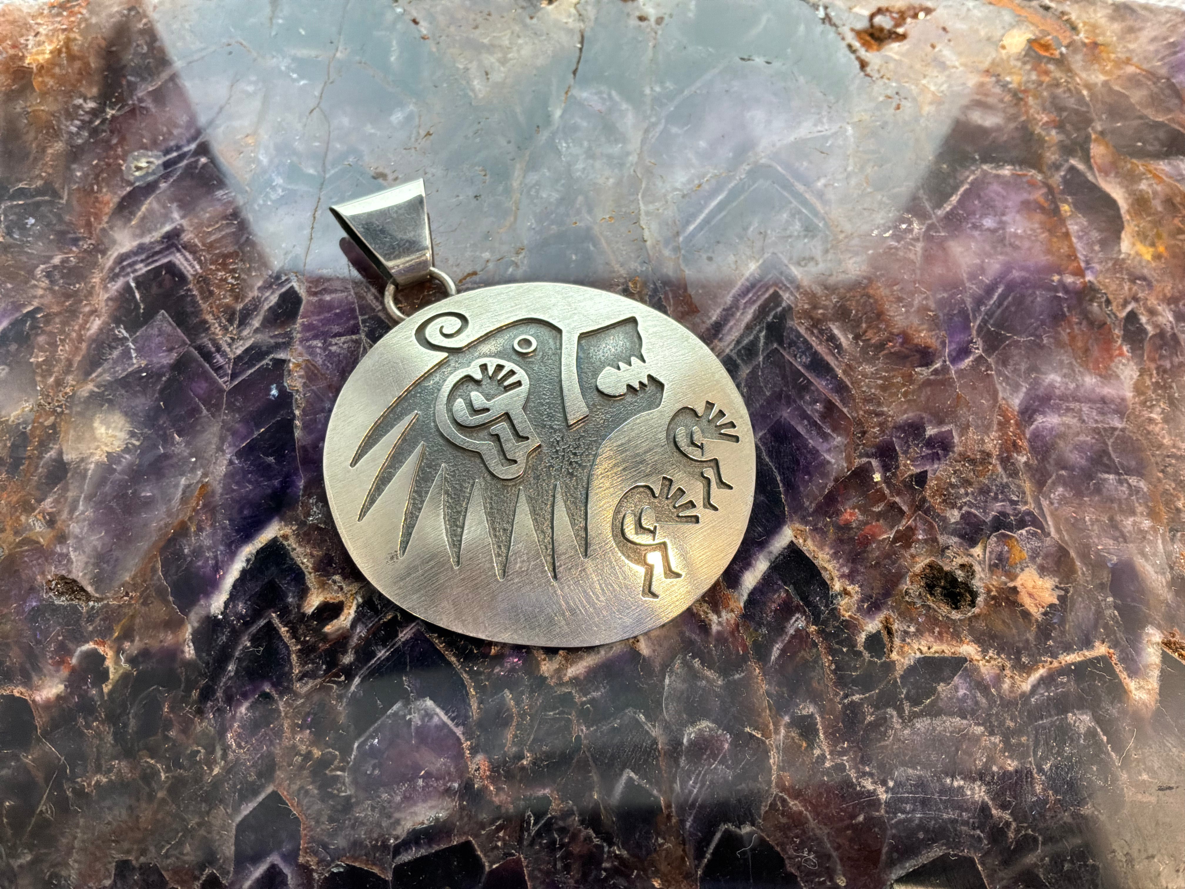 Hopi Style Wolf/Kokopelli Pendant