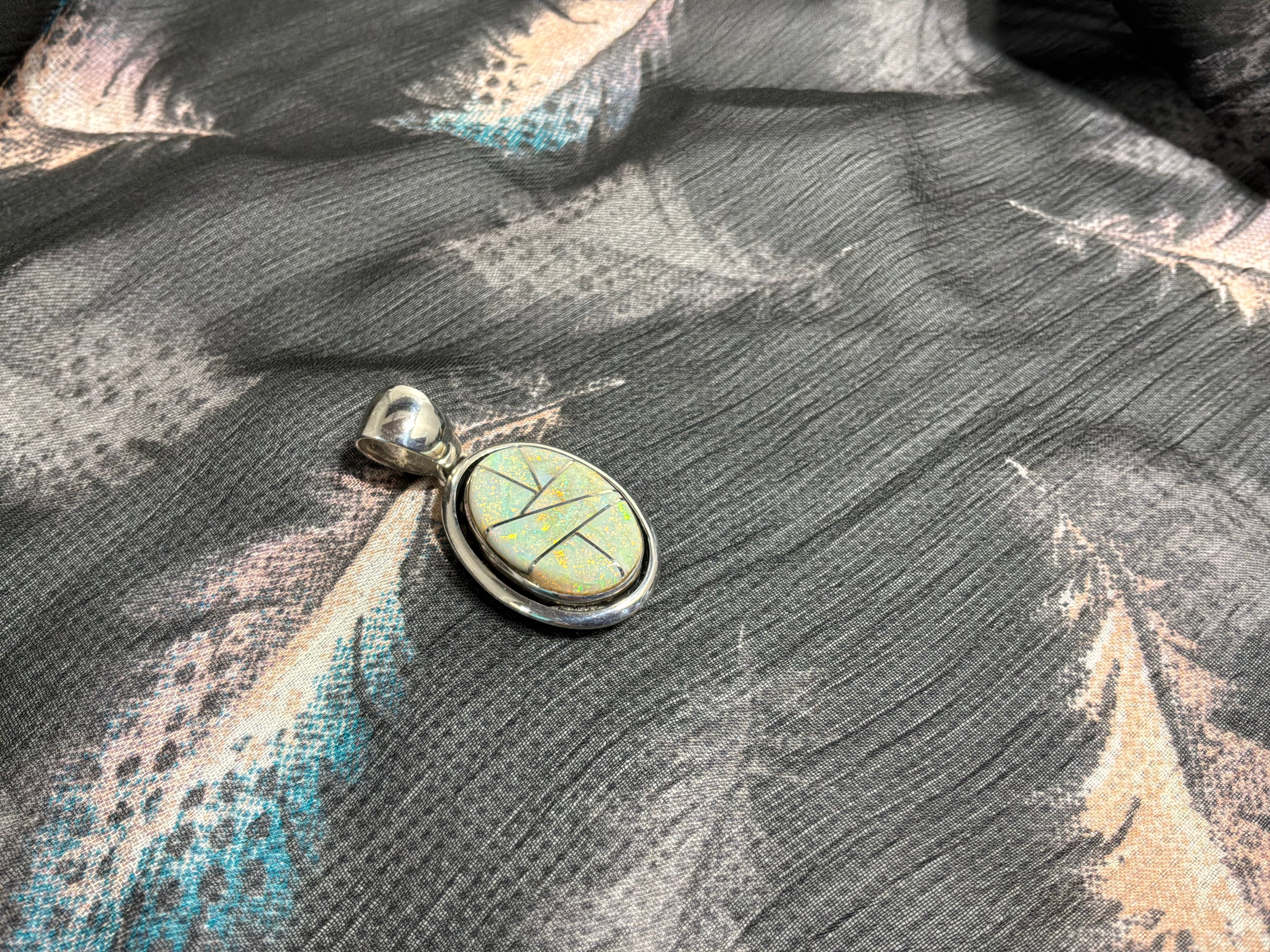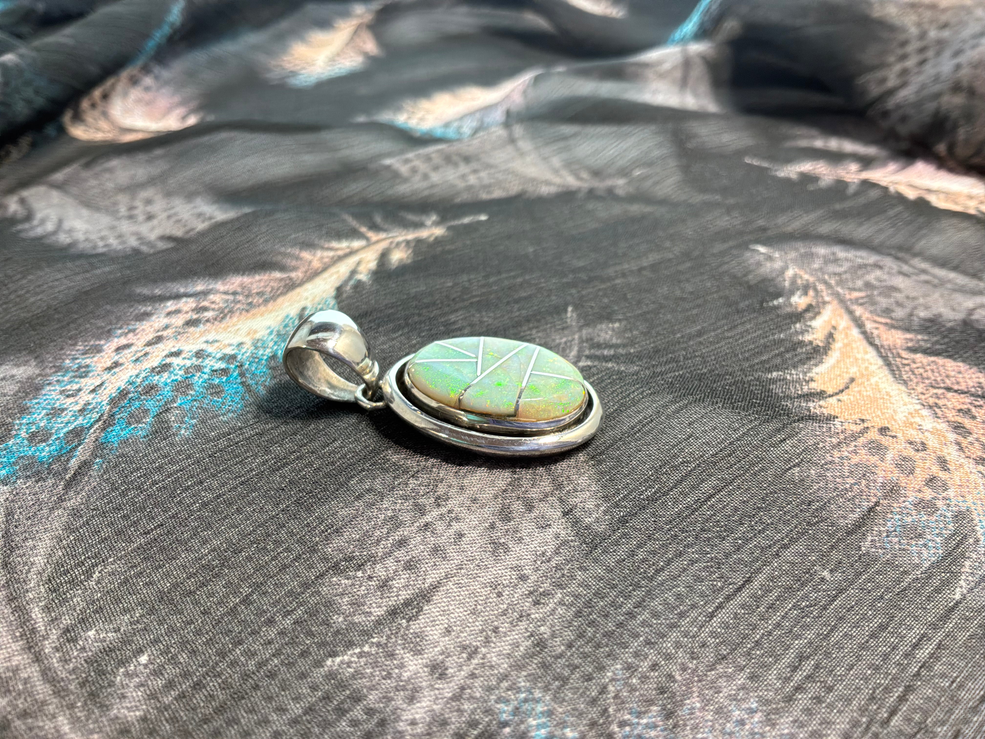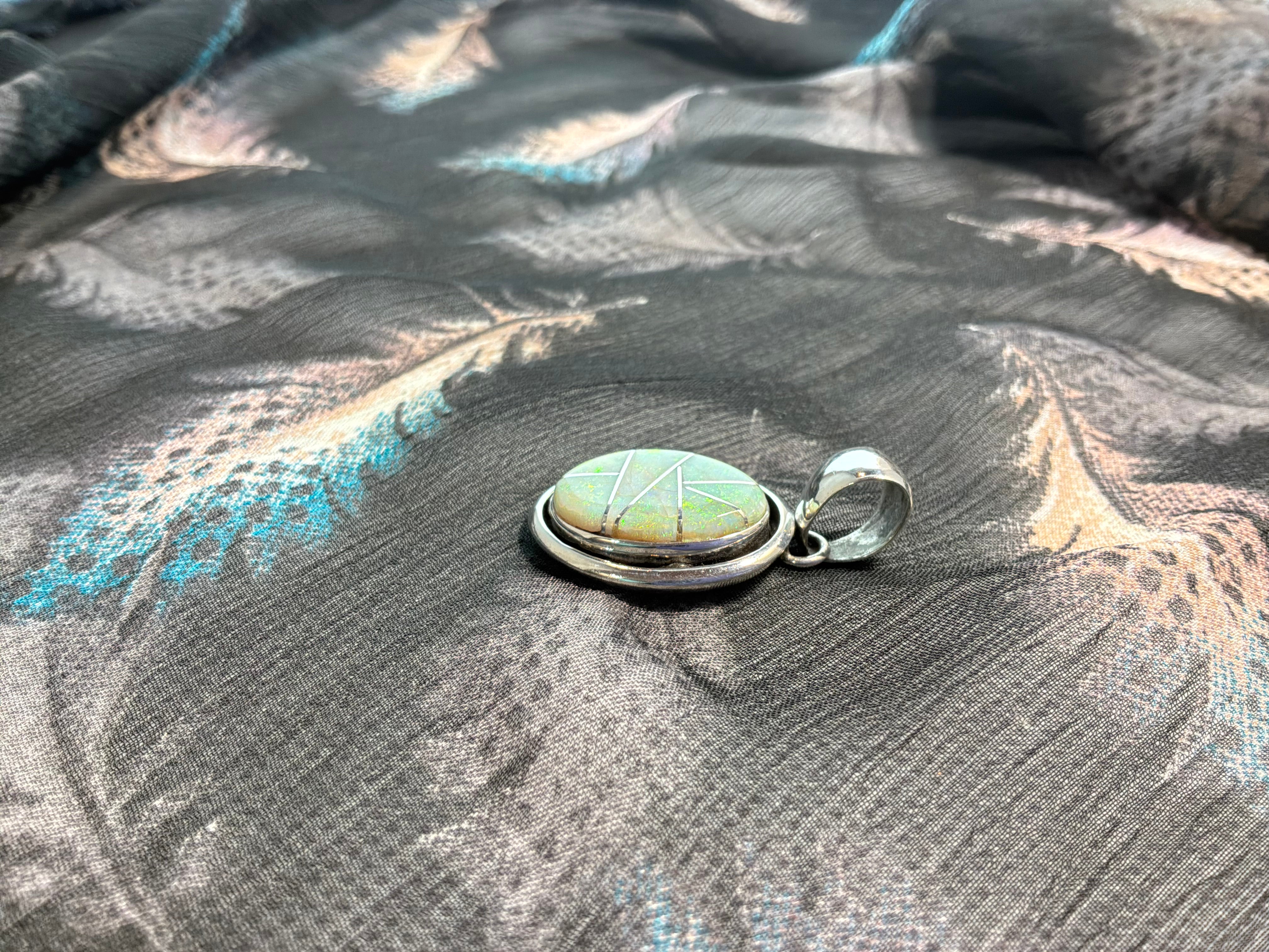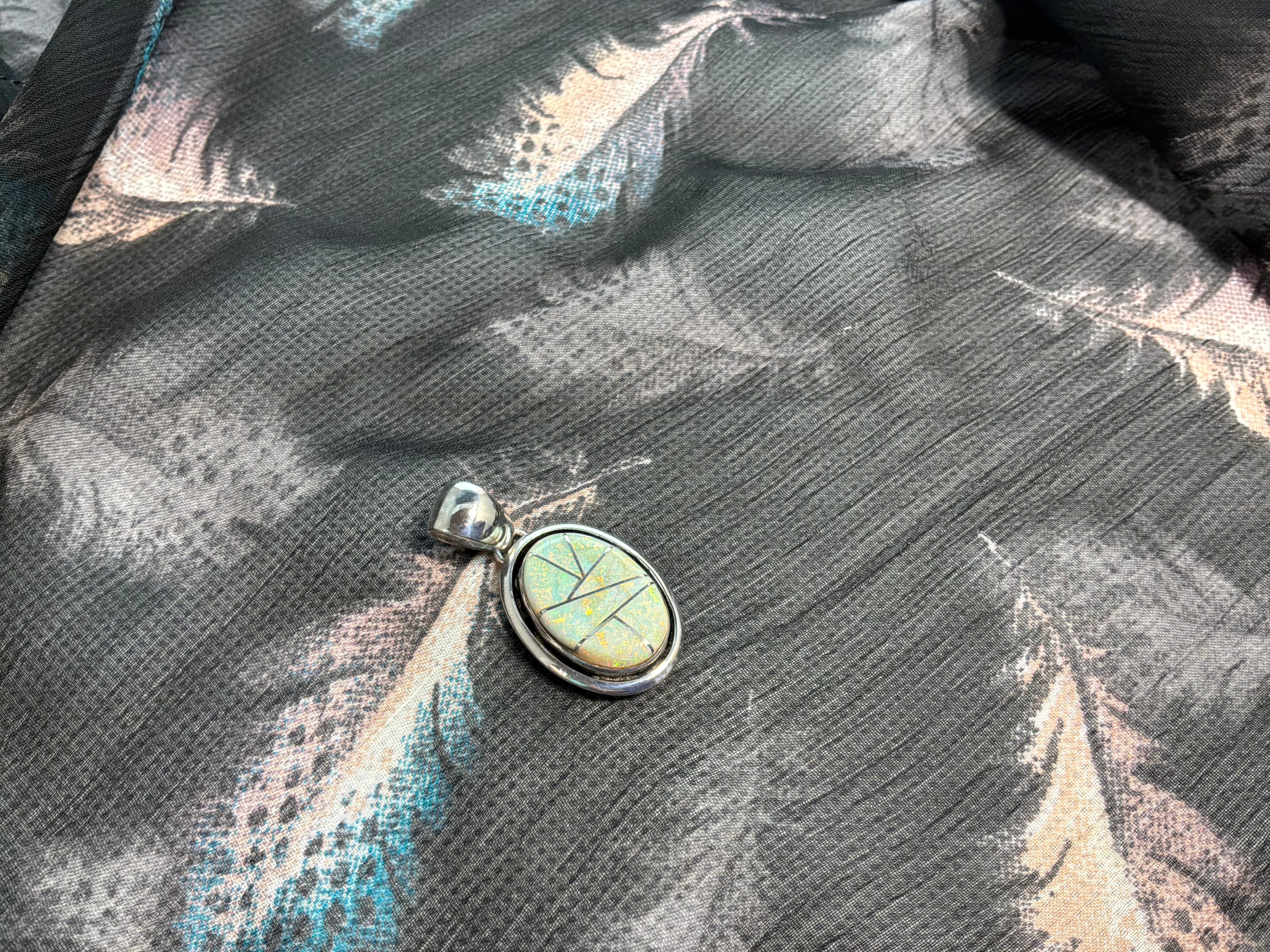 Spider Web Opal Inlaid Pendant