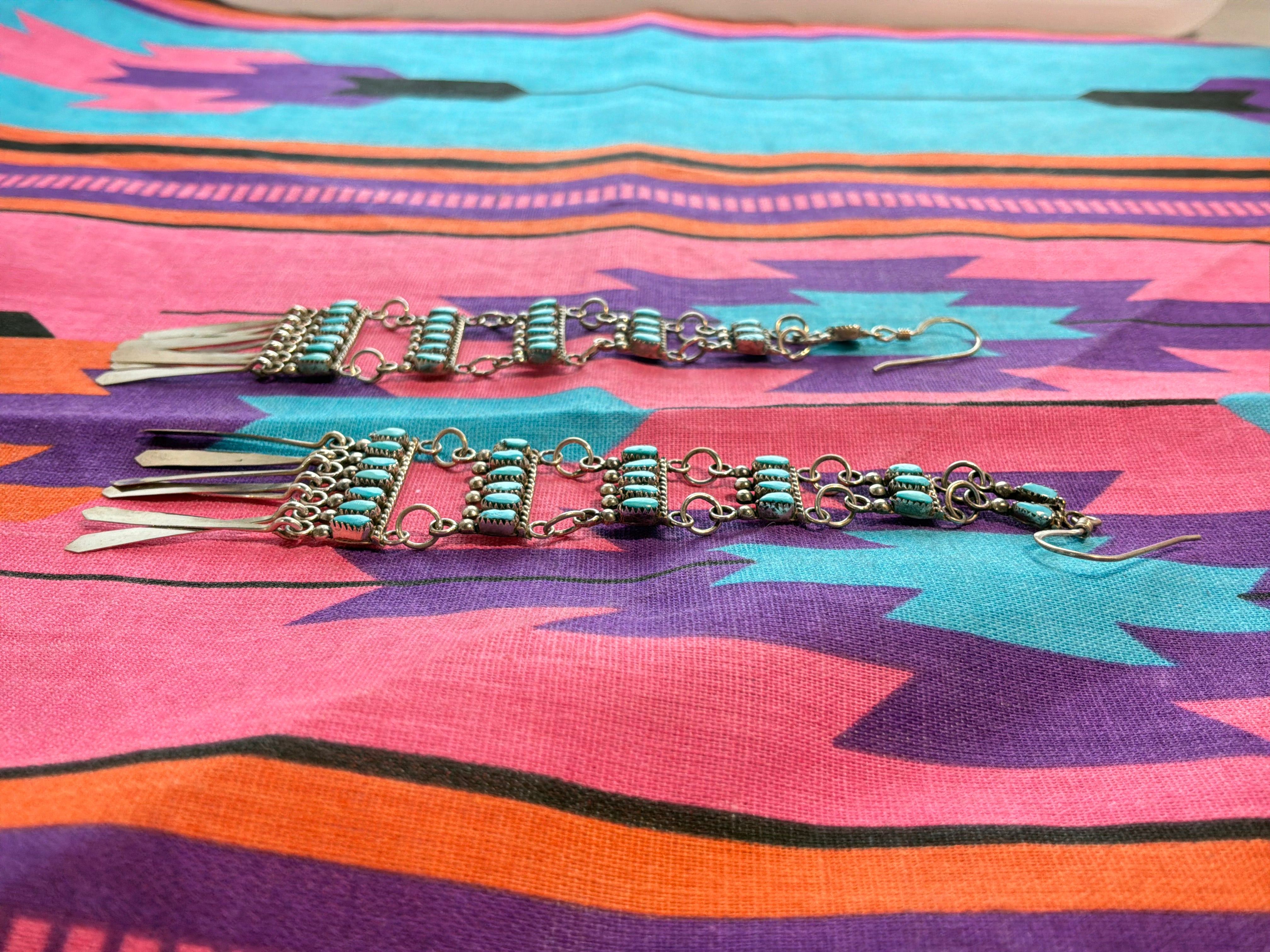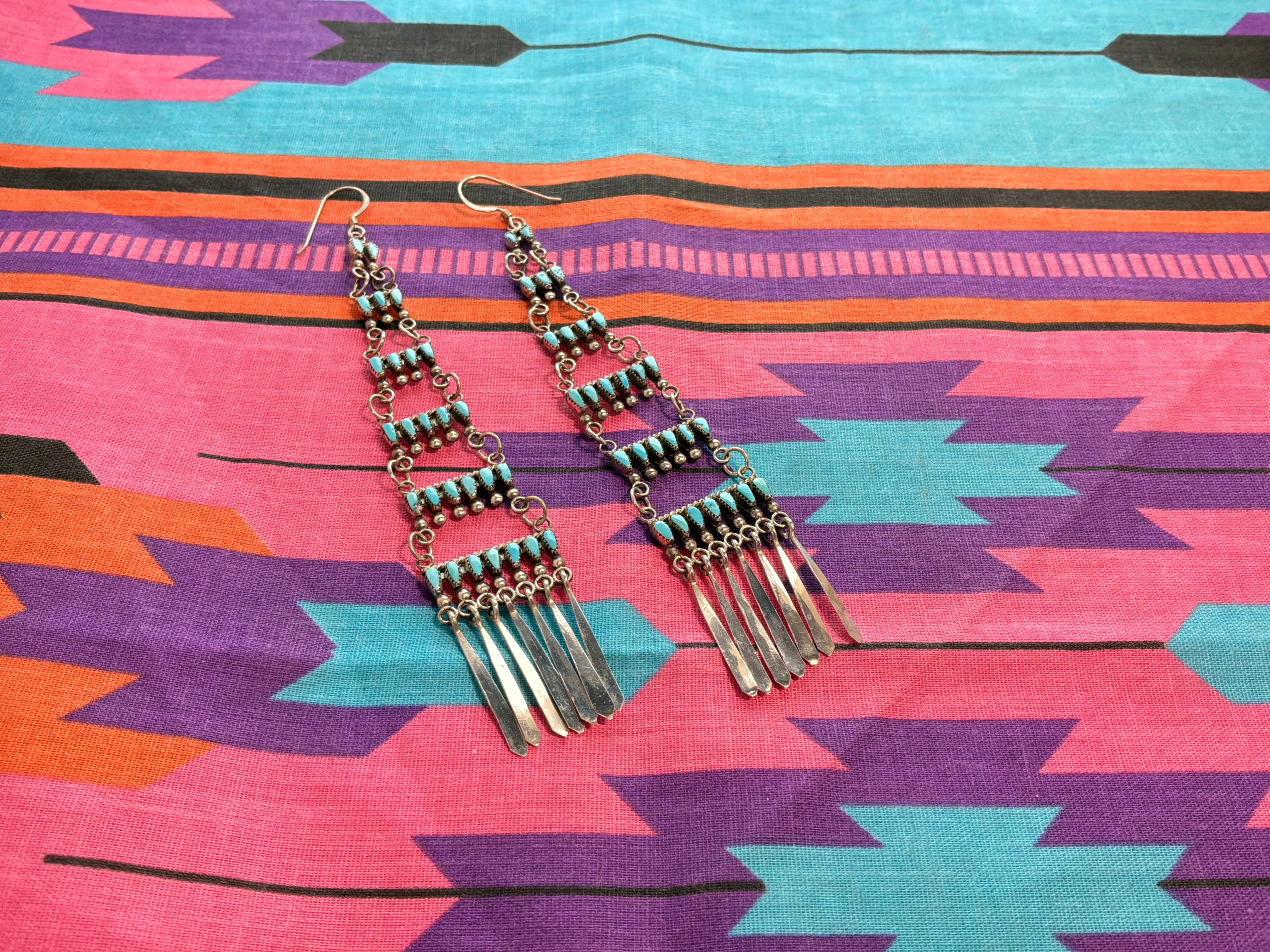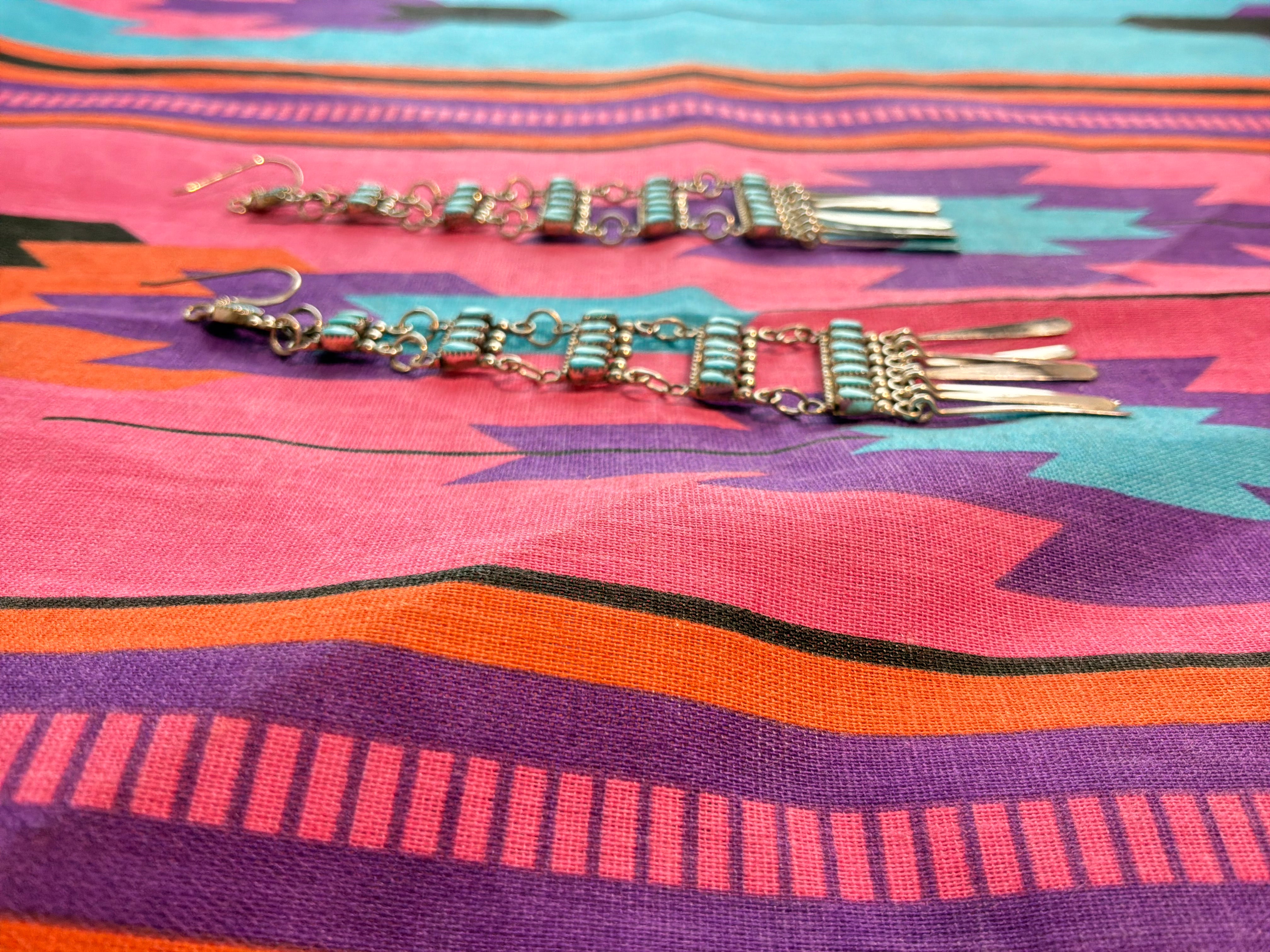 Needle Point Turquoise Dangle Earrings