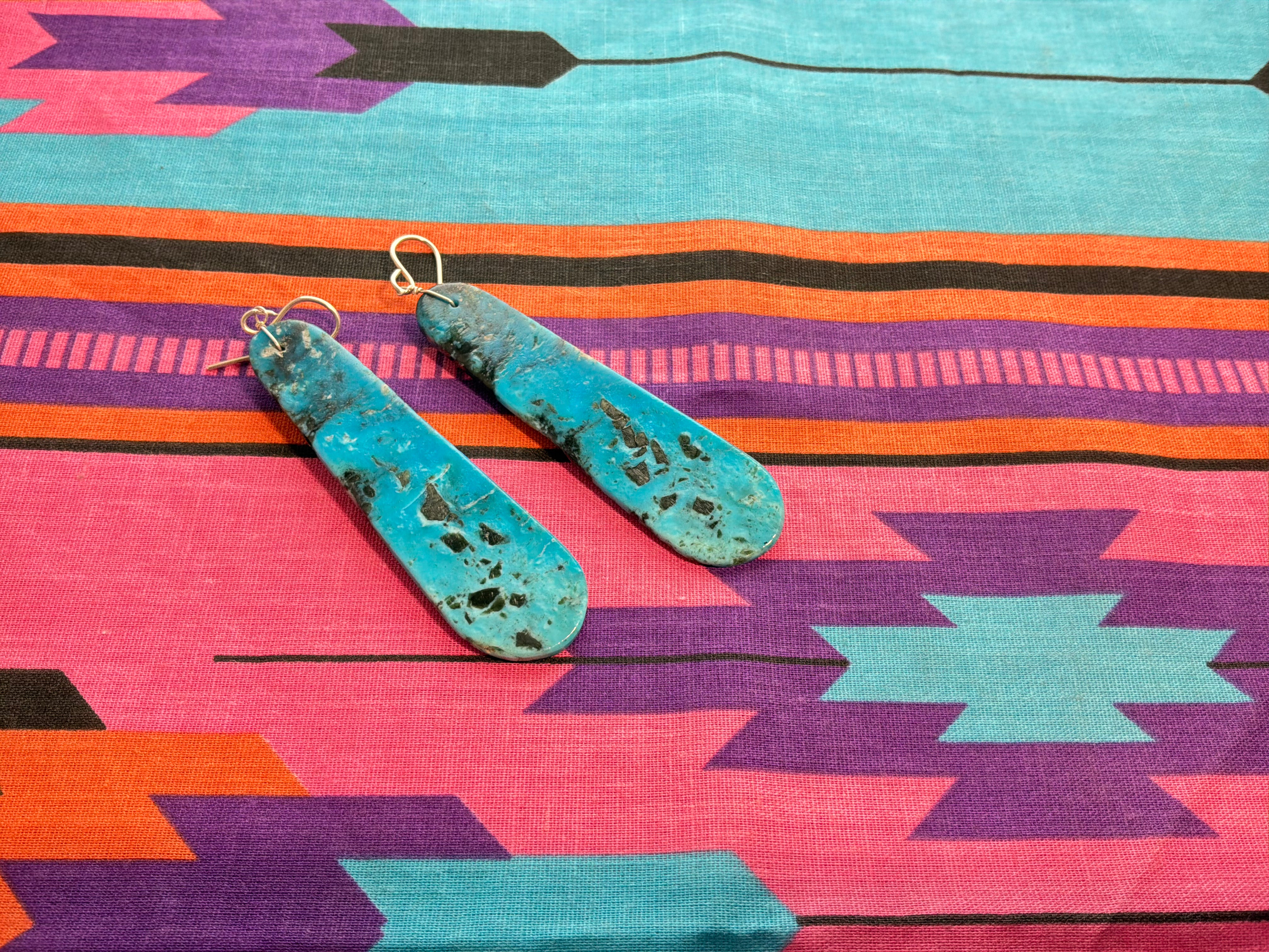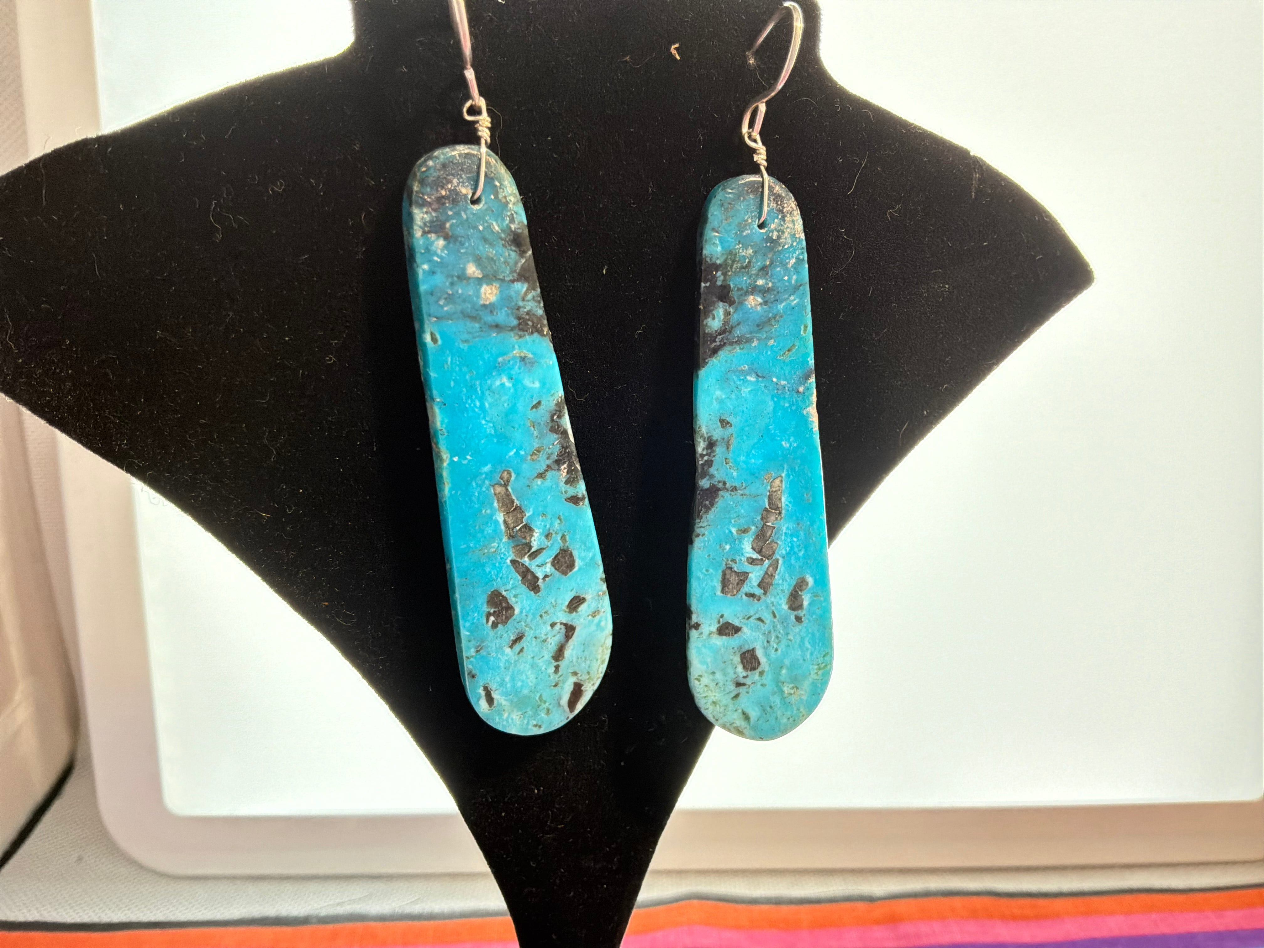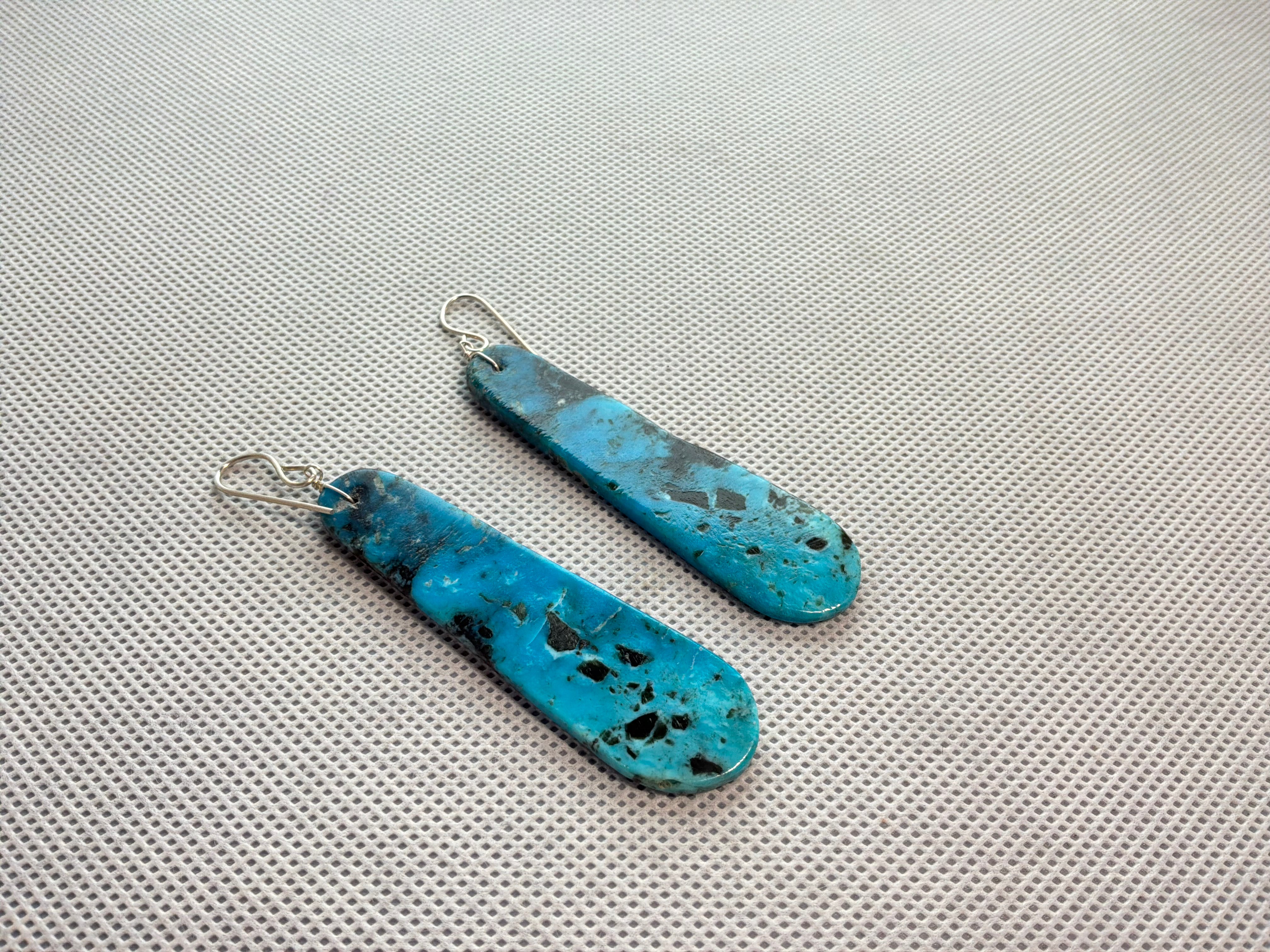 Santo Domingo style turquoise slab earrings. Turquoise slice polished both sides on sterling wire.