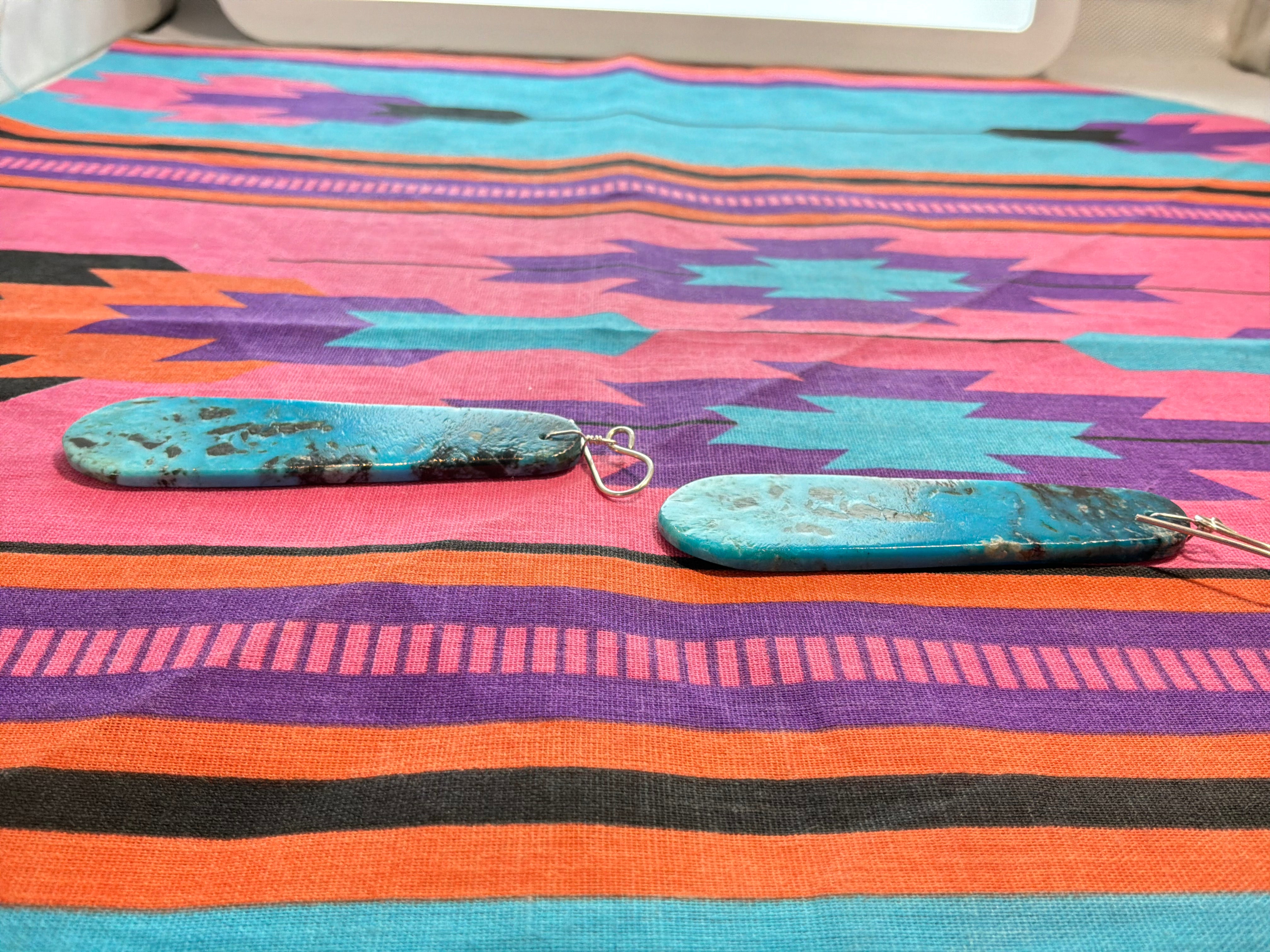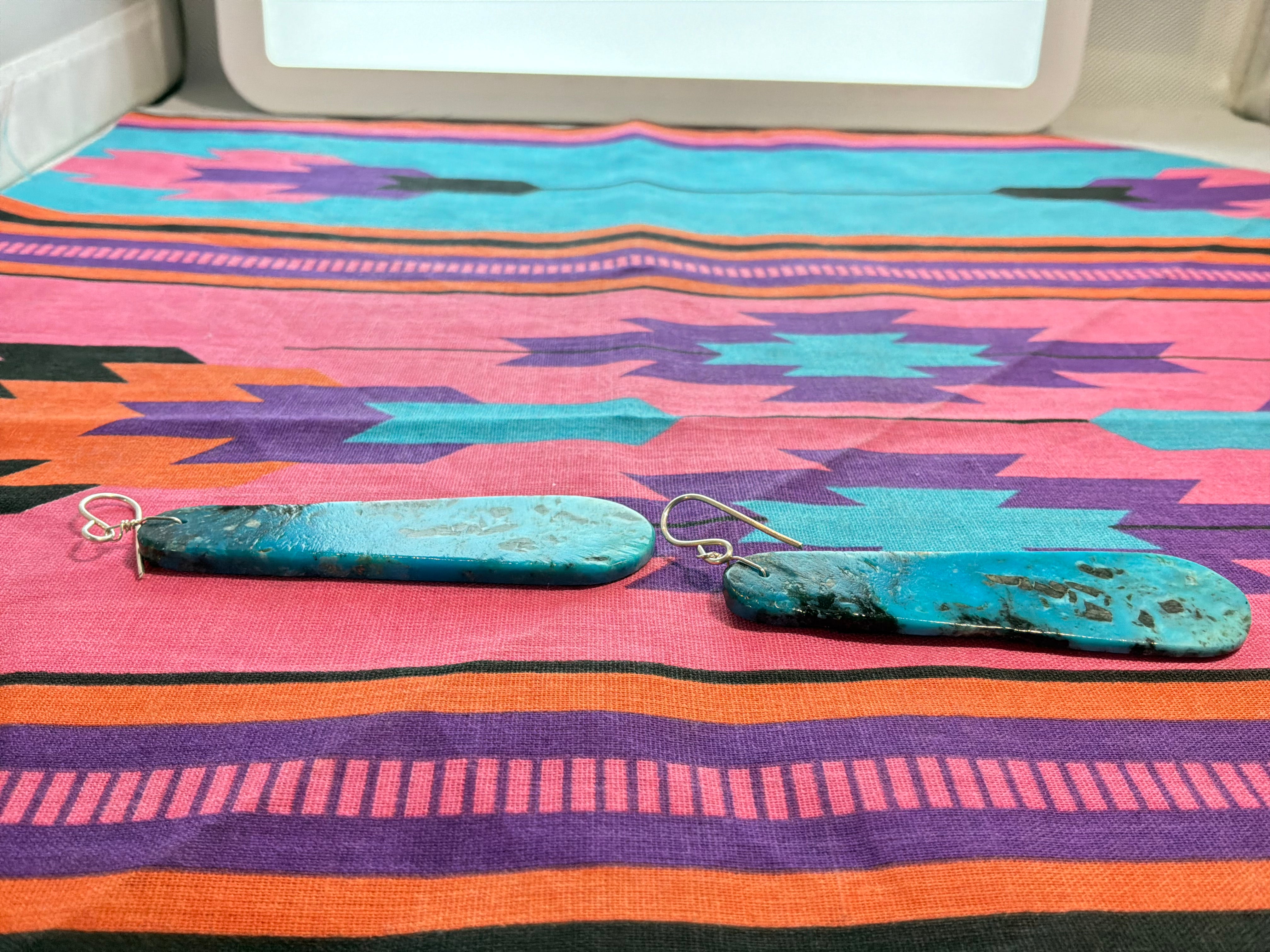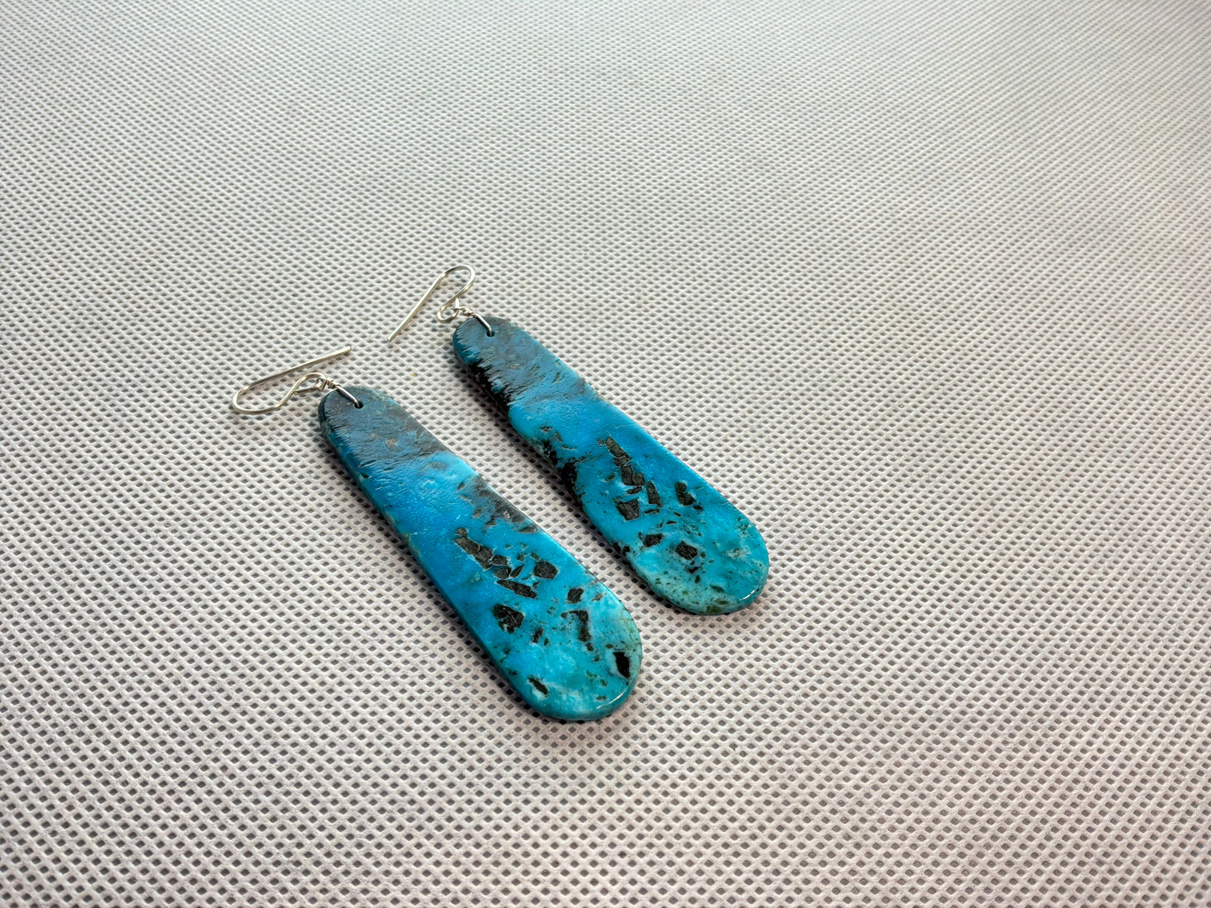 Santo Domingo style turquoise slab earrings. Turquoise slice polished both sides on sterling wire.